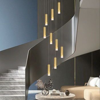 North America Wholesaler Indoor Decoration Dimmable Chandelier Coffee Shop Dining Room Staircase Gold LED Pendant Light